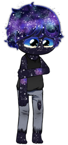Child of the Galaxy (O-01-55) is an Abnormality with the appearance of a small boy who is constantly sobbing. He wears a dark grey sleeveless shirt and gray pants. His skin and hair resemble the stars in the sky or a galaxy, with his hair color or background constantly changing. The child seems to know everything that is happening about the ones holding the pebbles given by him.