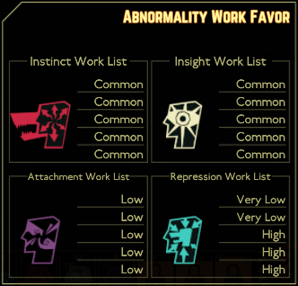 Justice lower than Level 3 works on the Abnormality, the counter will decrease at the end of the work. - A medium chance to decrease when the work result is