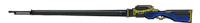 Der Freischütz (F-01-69) is a humanoid abnormality that wears a large cloak and grey clothing. The color palette of its cloak consists of a black, yellow, and blue. It has a black wispy form with no discernible features besides its eyes, head, arms, and legs. It carries a large gun, most likely a musket, with it.