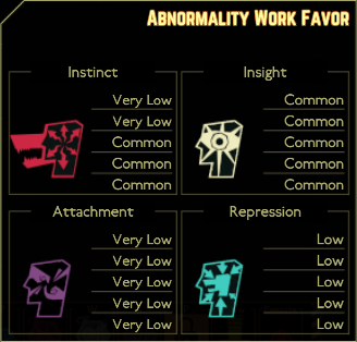 Qliphoth Counter is depleted, she will breach and become hostile against employees. She will mark the first employee or entity that she sees, attacking and chasing them until they die, moving to another nearby target in sight. She will continue breaching until subdued or the day ends. If she marks an employee, the mark can be removed by working on an Abnormality.
