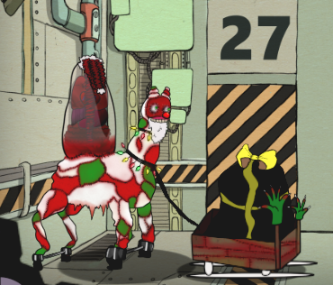 "Santa: A mysterious and transparent organic entity on top of Rudolph. It is full of what seems to be human organs, all of which function normally."