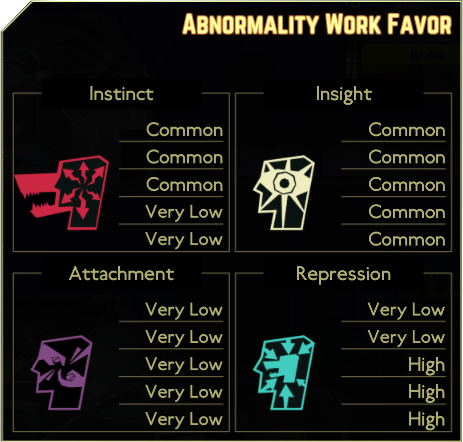 Justice level 2 or lower works with the Abnormality. - Decrease by 1 when an Agent with