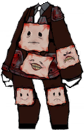 Today's Shy Look (O-01-92) is an Abnormality taking the form of a humanoid person of brown clothing or robes and skinless legs. Blood can be seen dripping from below. The person stands behind a mounted 'net' of skin, with two poles at the side supporting it. The cover of skin is wide, with blood around the borders and 5 faces of different expressions, from happiness to anger, at the front, with the person standing behind it changing position to take the spot behind the faces.