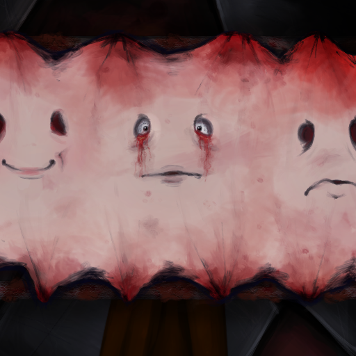 On an eventual later day, Today's Shy Look flayed their skin off and dried it outside, like the day they dried their laundry, having carved 5 different faces on it so they could express themselves, pleasing the people around them. From then on, whenever asked if anything was wrong, they would respond by saying "I'm just shy, that's all. Just shy..."